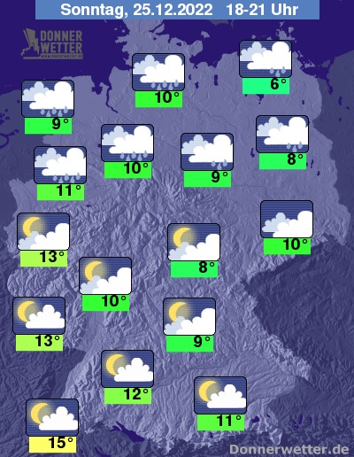 Heute Abend bleibt es über der Südhälfte bei teils lockerer, teils starker Bewölkung weitgehend trocken. Weiter nach Norden hin ist es dagegen bedeckt und es fällt häufig Regen. Die Temperatur liegt bei 6 Grad in Stralsund und bis 15 Grad in Freiburg. Der Wind weht zum Teil stark bis stürmisch, vor allem im Süden ist es aber auch oft schwachwindig.