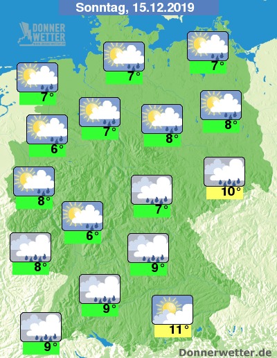 Am Sonntag ziehen zunächst überwiegend dichte Wolken durch und es fällt zeitweise Regen, der jedoch aus Nordwesten nach und nach abklingt. Im Anschluss lockert es vielerorts auf. Die Temperatur steigt auf 6 Grad am Taunus und bis 11 Grad in München. Im Norden weht ein starker bis stürmischer Wind. An den Küsten herrscht teils schwerer Sturm.