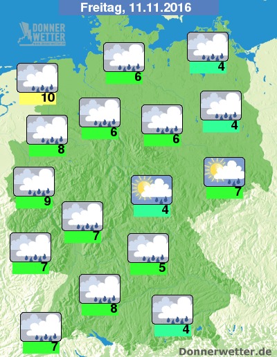 Der Freitag bringt dann zwar landesweit wieder etwas mildere Temperaturen - im Nordwesten könnten sogar wieder zweistellige Plusgrade erreicht werden - dafür aber auch viel Regen. Die Temperaturen erreichen Werte um 4 bis 10 Grad C. Ein eher trauriger Sessionsauftakt in den Karnevalshochburgen...