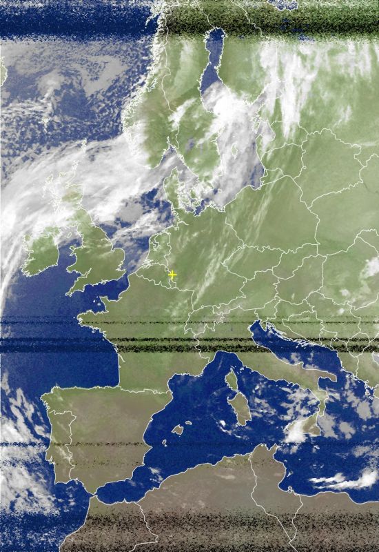 Unser Satellitenbild zeigt Wolkenfelder über Norddeutschland. Sonst ist es überwiegend wolkenfrei. Lokale Nebelfelder sind noch zu erkennen.