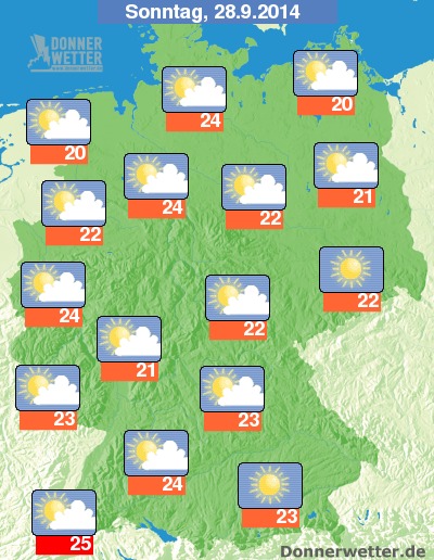 Am Sonntag kann sich, nach der Auflösung einiger Nebelbänke, zwischen meist nur lockeren Wolken, häufig die Sonne zeigen. Im Westen und Norden können auch mal dichtere Wolken mit dabei sein, dazu bleibt es aber trocken. Vor allem im Osten und Südosten ist es sogar vielfach sonnig und teils scheint die Sonne sogar von früh bis spät. Die Temperatur steigt auf 20 Grad in Rostock und bis 25 Grad in Konstanz.