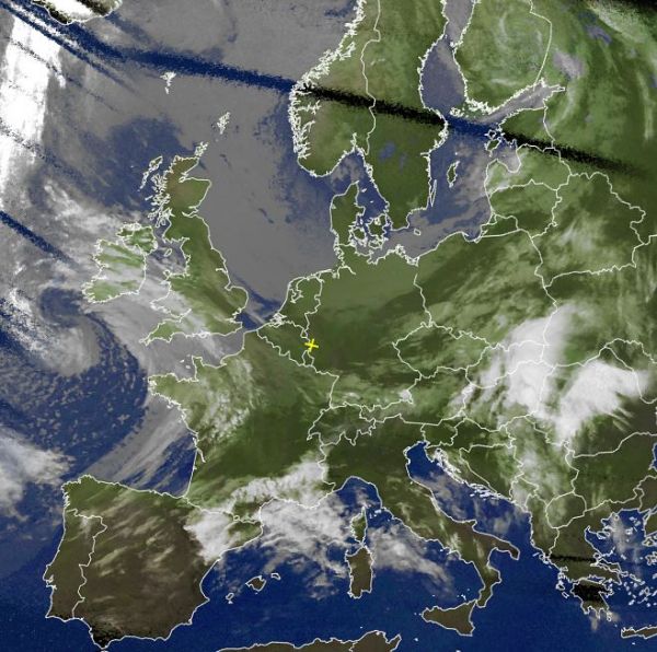 Auf dem Satellitenfoto von heute Morgen erkennen wir einen ausgeprägten Tiefdruckwirbel bei Irland. Er bringt mit seinen Ausläufern sehr wechselhaftes, kühles und mit Schauern durchsetztes Wetter von der Biskaya über den Nordwesten von Frankreich bis auf die Britischen Inseln. Ein weiteres Tief sorgt im nördlichen Mittelmeerraum für oft sehr durchwachsenes Wetter mit Schauern und auch teils kräftigen Gewittern.