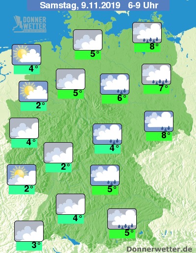 Auch der Samstag startet verbreitet mit einer geschlossenen Wolkendecke, nur im Nordosten und im Pfälzer Bergland ist es auch mal ein wenig Sonne mit dabei. In der gesamten Osthälfte muss in den Frühstunden mit Schauern gerechnet werden, zwischen der Bundeshauptstadt und Nordmecklenburg sowie am Alpenrand kann es zeitweise auch kräftiger regnen. In der Westhälfte bleibt es meist trocken.