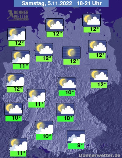 Heute Abend zieht es über der Westhälfte mehr und mehr zu, oft ist es aber auch noch aufgelockert bewölkt. Weiter nach Osten hin ist der Himmel mehrheitlich locker bewölkt oder sternenklar. Es bleibt landesweit trocken bei 9 Grad in München und etwa 12 Grad in Hamburg.