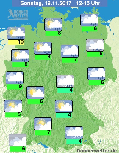 Heute Nachmittag bleibt es besonders im Osten und Süden Deutschland meist dicht bewölkt, dabei fällt zeitweise Regen, Schneeregen oder auch Schnee. Im übrigen Land ist es auch zum Teil stark bewölkt, teils zeigen sich jedoch auch Aufheiterungen, dazu sind einzelne Schauer möglich. Die Temperatur liegt bei 4 bis 10 Grad. Über der Nordhälfte weht ein teils starker, an den Küsten ein oft stürmischer Wind.