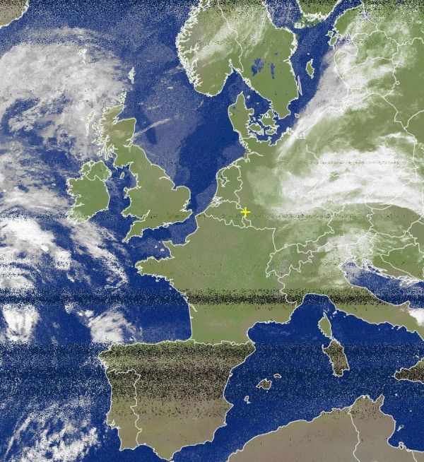 Auf dem Satellitenfoto von heute Morgen zeigen sich weite Teile Europas wolkenfrei, besonders freundlich und trocken ist es zur Zeit von den Britischen Inseln, Benelux, Frankreich bis zur Iberischen Halbinsel. Auch im Westen und Norden von Deutschland ist es verbreitet heiter und trocken. Dagegen ziehen in den Osten und Süden des Landes häufig dichte Wolken und es fällt zeitweise, gebietsweise auch anhaltender Regen.