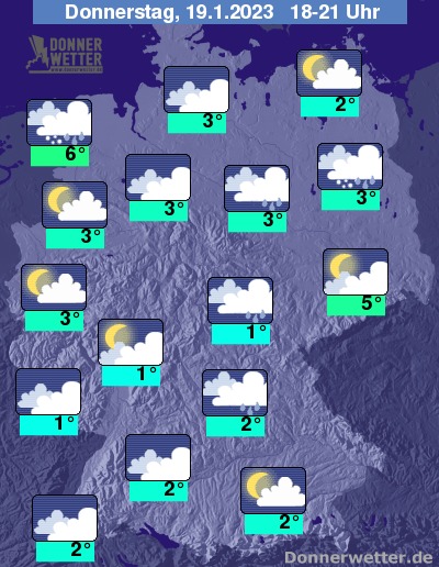 Heute Abend ist es weiterhin aufgelockert oder dicht bewölkt und es fällt nur hier und da etwas Schnee, Schneeregen, Regen oder Graupel, oft bleibt es auch trocken. Die Temperatur liegt bei 1 Grad im Grabfeld und 6 Grad an der Nordsee. An den Küsten weht ein starker und oft auch stürmischer Wind.