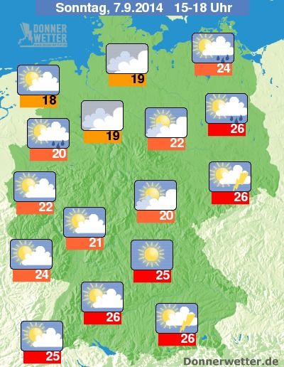 Die Temperatur liegt bei 18 Grad an der Emsmündung und schwülwarmen 26 Grad in München.