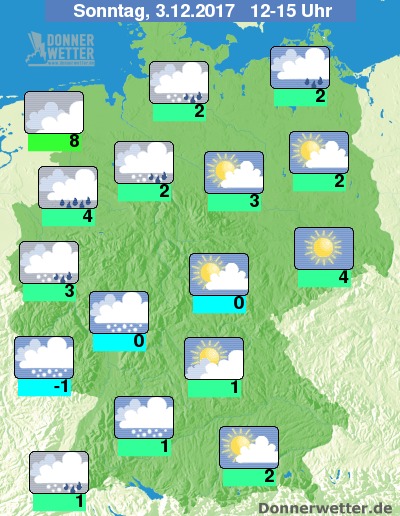 Heute Nachmittag ist es von Bayern, über Thüringen bis in die weiteren östlichen Bundesländer noch verbreitet heiter bis sonnig und trocken. Im großen Rest der Republik fällt unter dichten Wolken jedoch zeitweise Schnee, Schneeregen oder Regen, dazu ist es teils sehr glatt! Die Temperatur liegt bei -1 Grad im Saargau und bis 8 Grad in Cuxhaven.