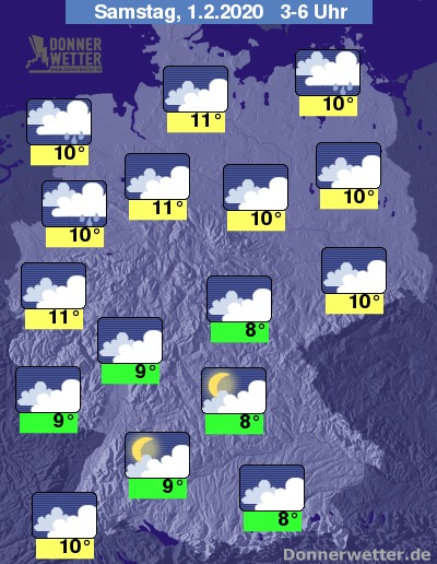 Zum Dämmerungsbeginn bewegen sich die Temperaturen zwischen 8 Grad im nördlichen Mecklenburg-Vopommern und 14 Grad in Teilen von Sachsen.