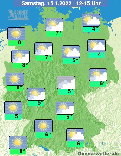 Heute Nachmittag ist es zum Teil trüb oder stark bewölkt, gebietsweise, bevorzugt im Westen und Südwesten zeigen sich Aufheiterungen oder es ist sonnig. Es bleibt landesweit trocken bei etwa 4 Grad in Stralsund und bis 8 Grad in Freiburg.