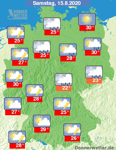 Heute zeigt sich der Norden und der Südwesten zum Großteil sonnig, teils ziehen aber auch hier einige, teils dichte Wolken mit vereinzelten Schauern und Gewittern durch. Im übrigen Bundesgebiet zieht aufgelockerte bis starke Bewölkung durch, dabei sind zeitweise Schauer und einzelne Gewitter möglich. Die Temperatur steigt auf 25 Grad in Hamburg und bis 30 Grad in Köln und Rostock.