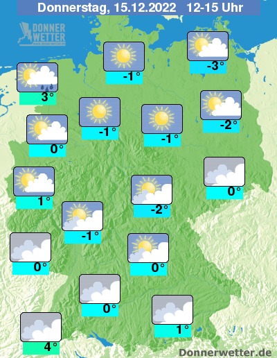 Heute Nachmittag scheint über der Nordhälfte Deutschlands verbreitet die Sonne. Im Küstenumfeld ziehen teils schon viele und oft dichte Wolken durch, dazu bleibt es meist trocken, sonst bleibt es komplett trocken. Weiter nach Süden hin ist es dagegen bedeckt und die Sonne zeigt sich nur selten. Im Alpenvorland ist es trüb, dabei kann hier und da auch etwas Schnee, Schneeregen und teils gefährlicher gefrierender Regen fallen, sonst bleibt es weitgehend trocken. Die Temperatur liegt bei -3 Grad in Vorpommern und bis 4 Grad im Breisgau.
