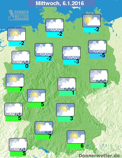 Heute ist es im Südwesten Deutschlands weitgehend bedeckt und es fällt zeitweise Regen, teils auch Schneeregen. Über der Nordhälfte ist es überwiegend stark bewölkt und es fällt gebietsweise Schnee. Im Norden NRWs auch Schneeregen oder Regen. Es besteht verbreitet Glättegefahr! Im Küstenumfeld und im äußeren Norden ist es hingegen meist heiter und dazu trocken. Im übrigen Bundesgebiet ist es oft stark, teils aufgelockert bewölkt und dabei weitgehend trocken. Die Temperatur steigt auf -5 Grad im nördlichen Brandenburg und bis 7 Grad im Rheinland. An der Nordsee weht oft starker Wind.