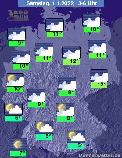 In der Nacht zum Samstag ist es über dem Süden meist locker bewölkt oder sternenklar. Im übrigen Bundesgebiet ist es hingegen verbreitet stark bewölkt oder bedeckt, dazu bleibt es aber weitgehend trocken. Die Temperatur sinkt auf 12 Grad in Magdeburg und bis 5 Grad in München.