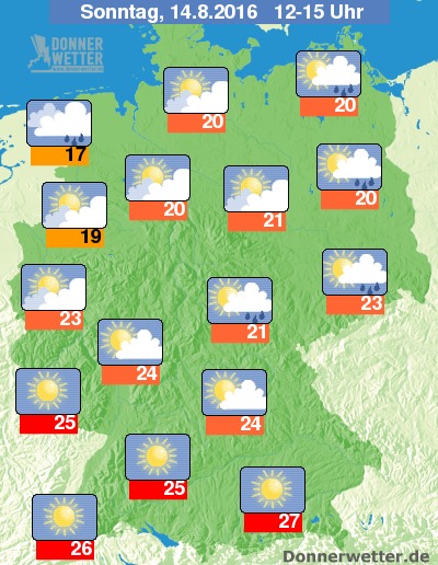 Heute Nachmittag zeigt sich der Süden verbreitet heiter bis sonnig und trocken. Von der breiten Landesmitte bis in den Norden ziehen hingegen oft viele und zum Teil auch dichte Wolken hinweg, dabei sind örtliche Schauer möglich, zumeist bleibt es allerdings trocken. Die Temperatur steigt auf 17 Grad in Ostfriesland und etwa 27 Grad in München.