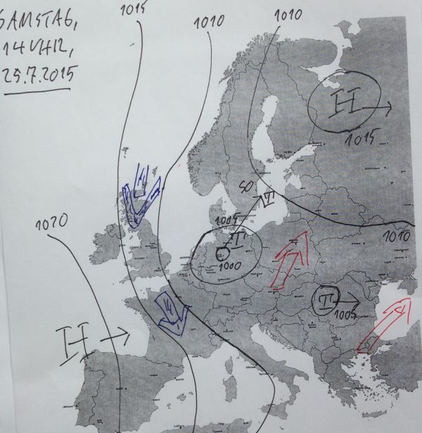 Hier unsere Wetteranalyse mit einem Sturmtief über Deutschland am Samstagmittag, welches zum Sonntag nach Nordosten wandern.