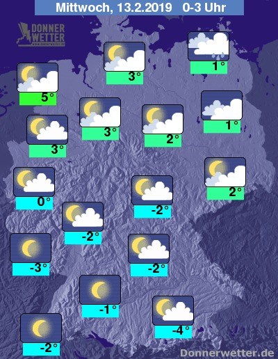 Im weiteren Nachtverlauf klart der Himmel im Süden weiter auf, regional kann sich Nebel oder Hochnebel bilden. Im Nordwesten überwiegt aufgelockerte Bewölkung, östlich der Elbe bleibt der Himmel meist bedeckt. Schauer sind weiterhin meist nur an der Ostseeküste zu erwarten.