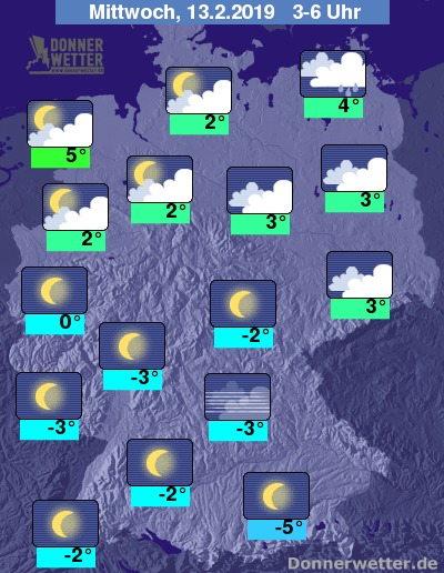 Die Temperaturunterschiede bleiben groß: Um -5 bis +5 Grad C in den Frühstunden.