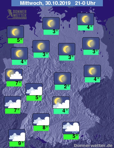 Am Abend präsentiert sich der Himmel im Norden und Osten oft sternenklar, im Süden und Südwesten halten sich dichtere Wolkenfelder. An den Alpen kann es noch stellenweise nass werden.