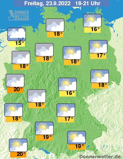 Heute Abend können im Nordseeumfeld erste Schauer durchziehen, über der übrigen Nordwesthälfte zieht es sich mehr und mehr zu. Weiter nach Süden und Osten hin ist es noch meist aufgelockert, teils aber auch schon stark bewölkt, jedoch trocken. Die Temperatur liegt bei 15 Grad in Wilhelmshaven und 20 Grad in Freiburg.