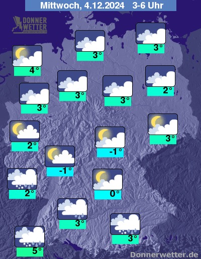 In der Nacht zum Mittwoch bleibt der Himmel meist stark, teils ist es auch wechselnd bis aufgelockert bewölkt. In Küstennähe sowie im Südwesten sind zeitweise Regen- oder Schneeschauer möglich, sonst bleibt es weitgehend niederschlagsfrei. Gebietsweise besteht Glättegefahr!