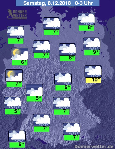 Im weiteren Nachtverlauf lockern die Wolken dann vieleorts auf und die Schauer lassen nach. Einzelne Niederschläge fallen dann vor allem noch an den Küsten sowie im Schwarzwald und am Alpenrand.