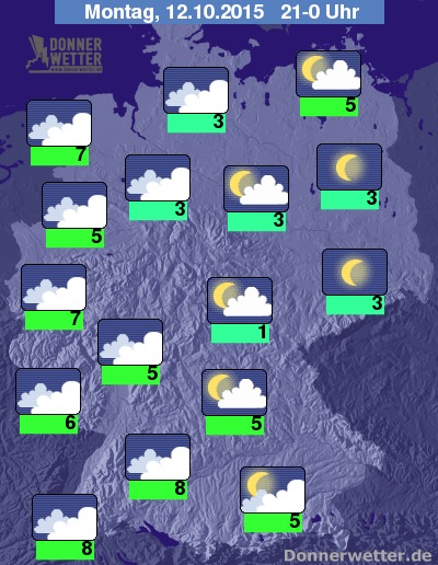 Heute Nachmittag ist es über der Osthälfte noch verbreitet sonnig, zum Teil ziehen hier im Nachmittagsverlauf aber auch schon ein paar Wolken auf. In den westlichen Bundesländern ziehen von Westen her jedoch einige, vor allem im äußeren Westen immer dichterwerdende Wolken durch. Bei Höchstwerten von 8 Grad im Nördlichen Harzvorland und immerhin 15 Grad im Breisgau bleibt es überall trocken.