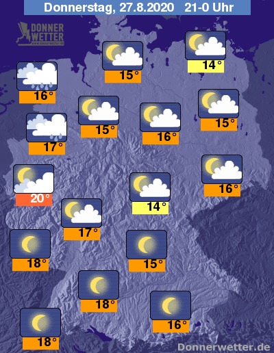 Werte am späteren Abend meist unter der 20-Grad-Marke.