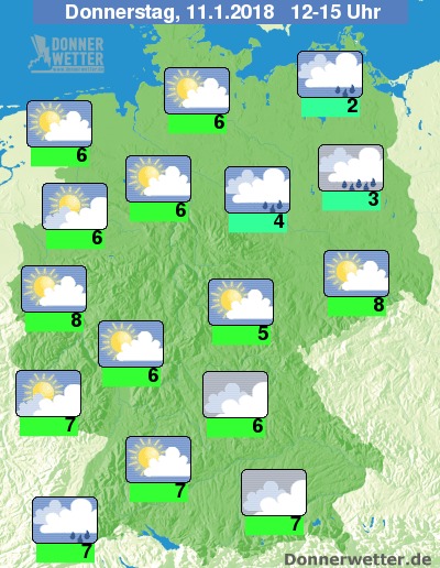 Dabei weisen auch die Höchsttemperaturen am Nachmittag ein eindeutiges Gefälle von Südwesten nach Nordosten auf. Während das Thermometer in Nordbaden auf fast zweistellige Höchstwerte klettert, liegen diese unter dem Einfluss wesentlich kühlerer Luftmassen im Nordosten nur knapp über dem Gefrierpunkt.