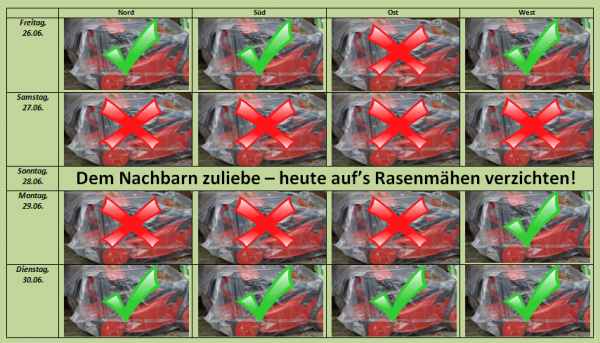 Bei Temperaturen bis 30 Grad C dürfte sich dann nämlich auch dem leidenschaftlichsten Gärtner die Fragen stellen, ob er der Tag nicht lieber planschend im Freibad statt schwitzend bei der Gartenarbeit verbringen möchte.