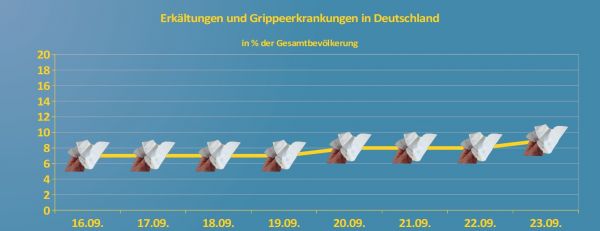 Zwischen sieben und neun Prozent der Bevölkerung haben nun mit Erkältungen / grippalen Infekten oder sogar Grippeerkrankungen zu kämpfen. Die typische erste Herbst-Erkältungswelle läuft an.