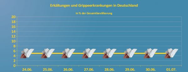 In dieser Woche ärgern sich nur etwa fünf Prozent der Bürger mit einem Erkältungs- oder Grippeleiden herum.