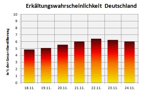Sie liegt nun knapp über dem Durchschnitt. Handehygiene ist in diesen Tagen sehr wichtig, da 80 % der Erkältungen über die Hände übertragen werden - nur wenige Ansteckungen erfolgen durch eine Luftübertragung.