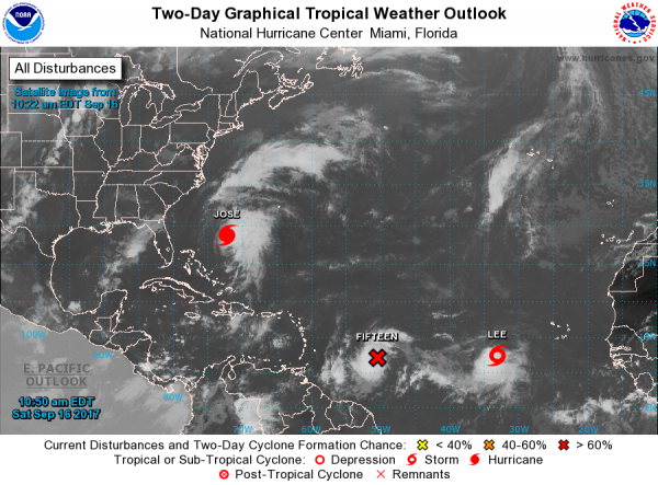 Hier nochmals die Übersicht über alle Systeme. Hurrikane Lee lauert schon im Osten.