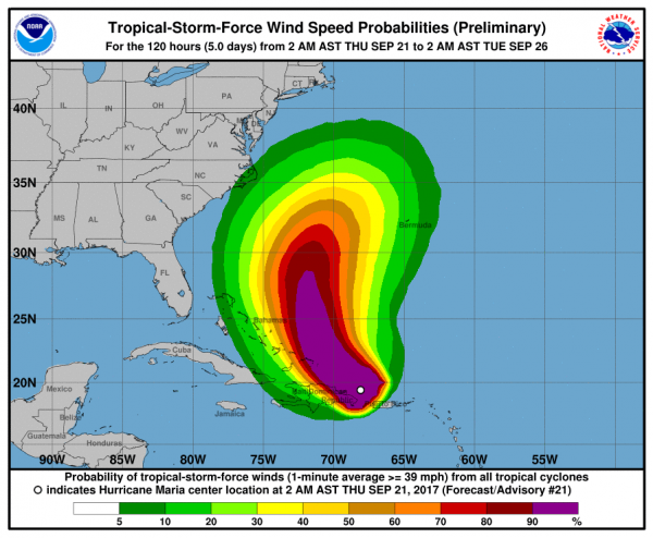 Aktuell sieht es danach aus, dass der Hurrikan in den kommenden Tagen an Kraft verliert, bevor er die Küste der USA erreicht. Dennoch ist zwischen Freitag und Sonntag mit hohem Wellengang und eventuellen Überschwemmungen zu rechnen. Als nächstes nimmt "Maria" Kurs auf die Dominikanische Republik und die Bahamas.