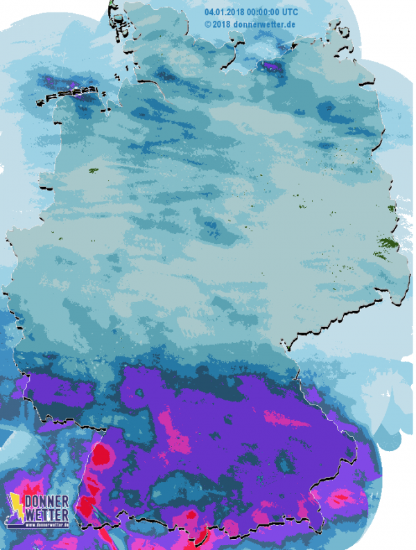 Extreme Niederschläge am 03.01.2018 vor allem im Süden. Hochwasser war die Folge.