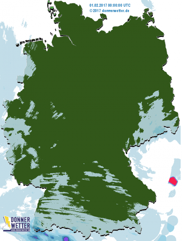 Gegen Abend setzte im Westen leichter Warmfrontregen ein, der am Donnerstag (02.02.) auch die Mitte und den Osten des Landes erreichte und hier gebietsweise zu gefährlichem Glatteis führte.
