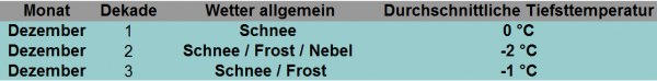 Im kommenden Monat könnte der Besuch der Weihnachtsmärkte dann auch endlich von passenden Wetter begleitet werden, es wird deutlich kälter.