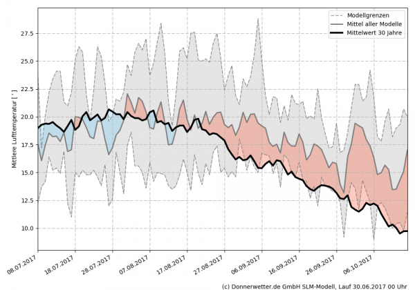 Auch im Osten geht es zwar eher wechselhaft in den neuen Monat, Regenmengen wie am Donnerstag und Freitag sind aber vorerst nicht mehr zu erwarten. Stattdessen bleibt es im neuen Monat über weite Strecken bei eher gemäßigten Julitemperaturen, eine Trendwende deutet sich nach wie vor erst im August an. Welche Abweichungen unsere Modelle in Hinblick auf Temperatur, Niederschlag und Sonnenscheindauer sehen, zeigen die nachfolgenden Grafiken.