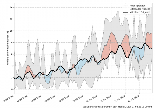 Unsere aktuellen Langfristprognosen für Lufttemperatur, Sonnenscheindauer und Niederschlagshöhe.