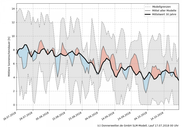 Unsere aktuellen Langfristprognosen für Lufttemperatur, Sonnenscheindauer und Niederschlagshöhe.