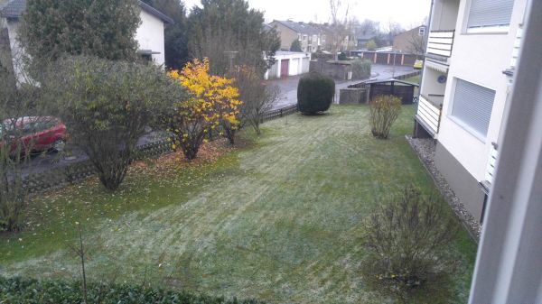 Bereits am Donnerstagmorgen verirrten sich ein paar weiße Flocken bis in tiefe Lagen. Sogar im sonst so schneearmen Rheinland gab es ein bisschen "Puder" auf der Wiese, wie auch hier an unserer Wetterstation in Bonn:
