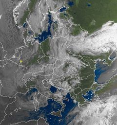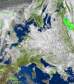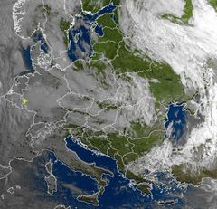 Satellitenbild: Luftmassengrenze über Mitteleuropa