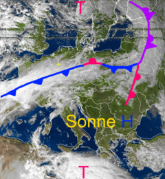 ![]() | | Satellitenbild 21.03.2017 Kaltfront überquert Deutschland |