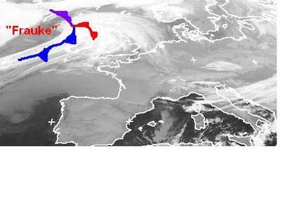 Großbritannien ist auf dem Satellitenbild von Montag früh nahezu unter Wolken verschwunden. Hierfür sorgt das neue Tief 'Frauke', dessen Ausläufer heute über die Inseln hinwegziehen, und häufig Regen, teils auch kräftigen Wind bringen. Sonst ist es in weiten Teilen Europas unter leichtem Hochdruckeinfluss teils freundlich, teils auch neblig trüb, aber größtenteils trocken. (Bildquelle: NERC Satellite Receiving Station, Dundee University, Scotland, http://www.sat.dundee.ac.uk/)