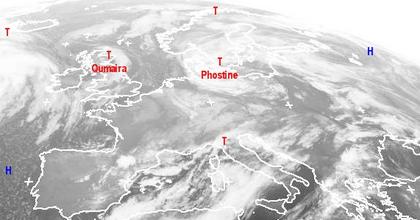 Auf dem heutigen Satellitenfoto zeigen sich besonders dichte Wolken im Bereich von Tief 'Phostine' von Norddeutschland über die Ostsee bis nach Finnland. Tief 'Quamaira' bei den Britischen Inseln sorgt auf selbigen für häufige teils kräftige Schauer mit zwischenzeitlichen Auflockerungen. Ebenfalls teils dicht oder stark bewölkt ist es vom westlichen bis zentralen Mittelmeer, hier sorgen mehrere Tiefausläufer für einzelne, teils gewittrige, Schauer. In den übrigen Regionen ist es meist locker, teils auch stärker bewölkt, aber bis auf einzelne Schauer meist trocken. Insgesamt am freundlichsten und trockensten ist es dank eines Hochs über Russland im Osten und Südosten Europas. Hier bleibt es allerdings teils auch ganztägig trüb.