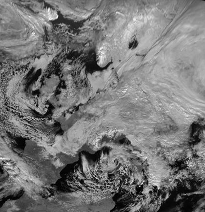 Tief 'Queen' bildet über Italien und dem Mittelmeer einen ausgeprägten Wolkenwirbel. Über Südost- und Mitteleuropa sorgt es jedoch bei feucht-kalter Luft für eine verbreitet dichte Wolkendecke. Unter dem Hochdruckeinfluss vom mittleren Skandinavien über die Britischen Inseln bis nach Nordspanien gibt es dagegen immerhin ein paar wolkenfreie Gebiete.