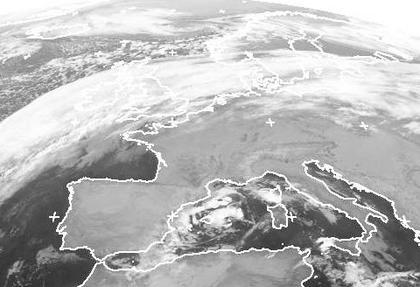 Zurzeit bestimmt über der Südhälfte des Kontinents Hoch 'Yens' das Wetter. Wolken findet man hier kaum. Nur über dem westlichen Mittelmeer kommt es zu einzelnen Schauern oder Gewittern. Im Norden dominiert dagegen Tief 'Zhara' über Skandinavien. Vor allem an der Grenze von sehr milder Luft im Süden zu etwas kühlerer im Norden liegt dabei ein dichtes Wolkenband, das auch etwas Regen bringt. Es erstreckt sich von den Britischen Inseln über Norddeutschland und Südskandinavien bis nach Russland. (Bildquelle: NERC Satellite Receiving Station, Dundee University, Scotland, http://www.sat.dundee.ac.uk/)