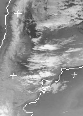 Winde vom Pazifik überströmen die Anden und sorgen für Föhn und Föhnwolken im Lee der Anden. Dabei entstehen streifenförmige Strukturen der Wolken.